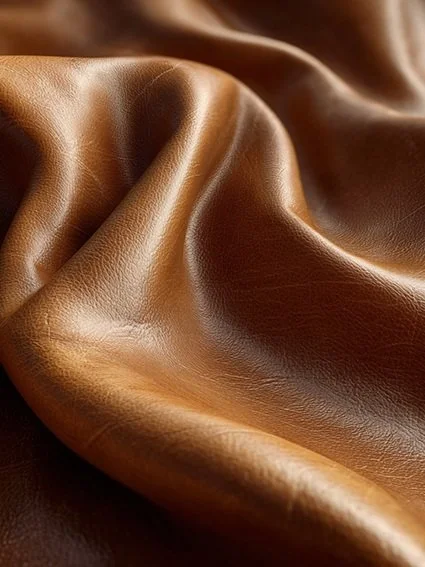 Polished calf leather is a high-shine leather treated with resins or waxes for a glossy, durable finish.